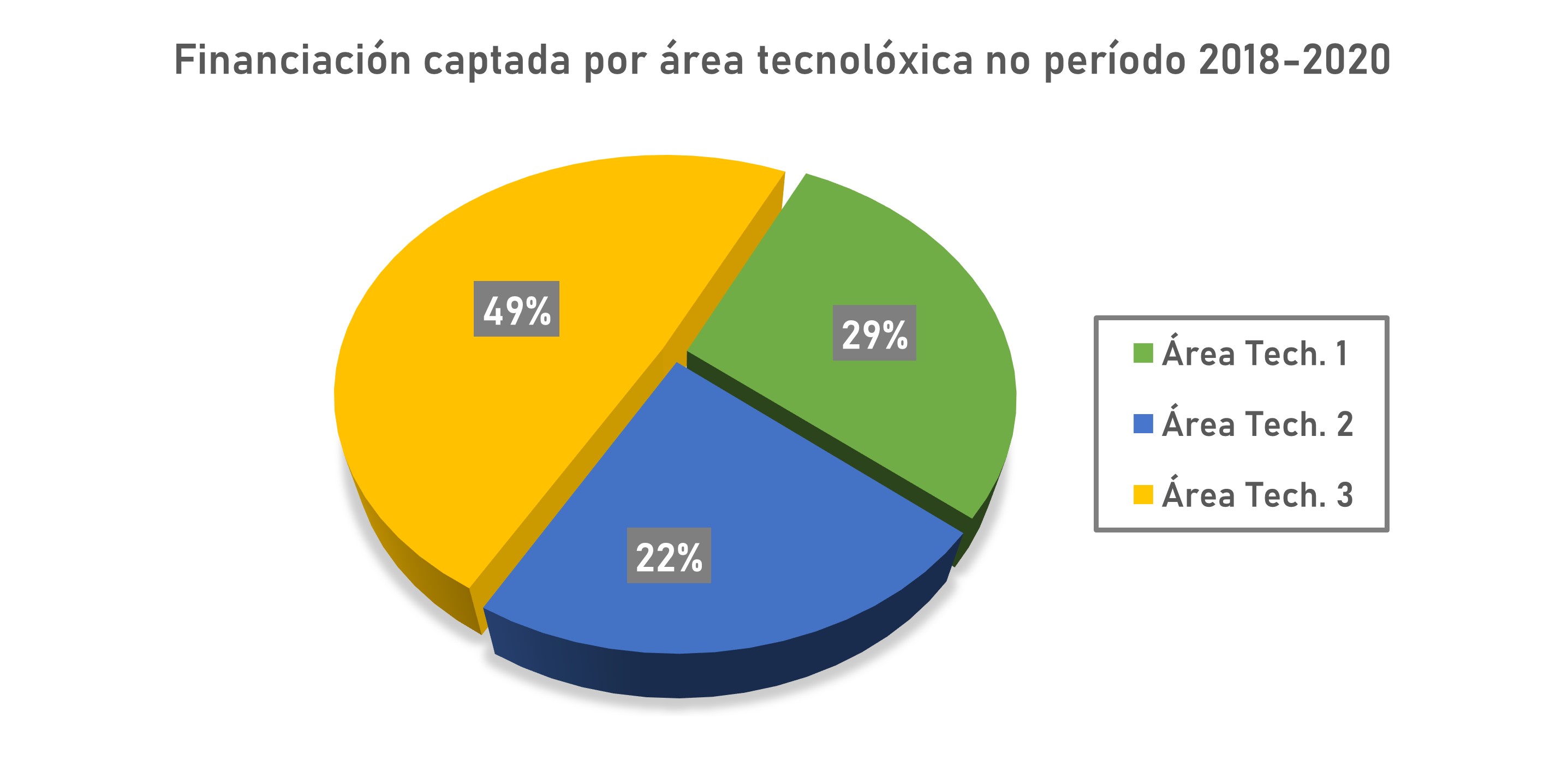 Distribución da financiación captada en porcentaxe por área tecnolóxica no período 2018-2020